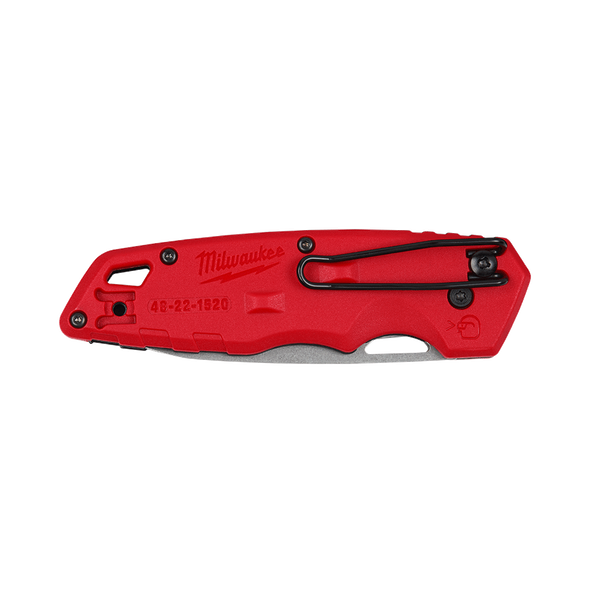 Our FASTBACK™ Folding Knife features a press and flip mechanism providing you easy, one-handed opening. The folding knife has a stainless steel drop point blade that stays sharp. The pocket knife also features a liner lock that secures the blade while allowing you to easily close it when done. The folding pocket knife has a durable belt clip that reduces pocket tearing and includes a tether-ready lanyard hole.