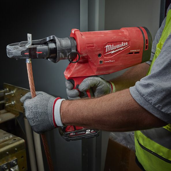 The M18 FORCE LOGIC 400mm² Utility Crimper is the Easiest Way to Crimp. Engineered to reduce weight and improve balance, it features a 350˚ rotating head and red alignment marks ensures a Balanced design and Easy Crimper to Align. Predictive Force Monitoring (PFM) constantly measures force output to deliver consistent speed that won’t bog down on larger connectors while delivering accurate pressure, every time. The only tool that provides instant pressure verification with a green indicator.
