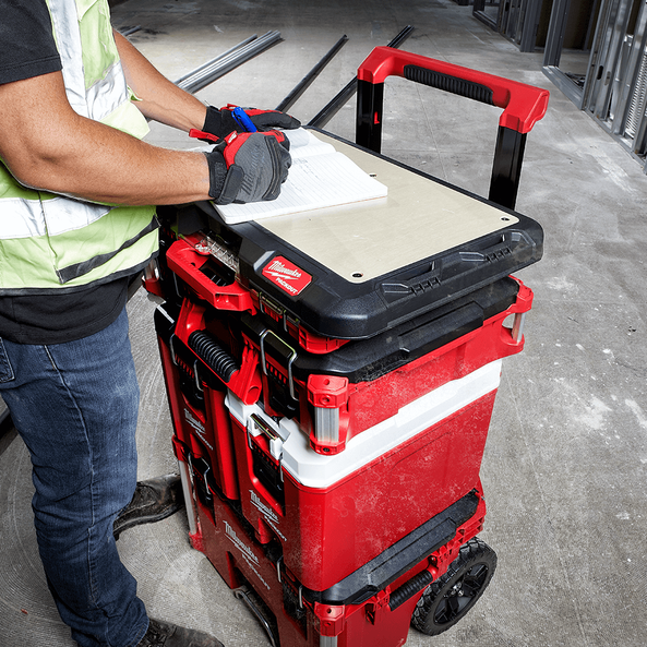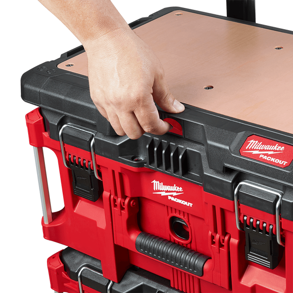 The customisable worktop has a 22.5kg weight capacity and a fastener-ready design, which allows you to attach vises, chargers, and a variety of other items to the top of your PACKOUT™ stack for easy and secure transport. The MILWAUKEE® PACKOUT™ Modular Storage System is the industry's most durable and versatile storage system.